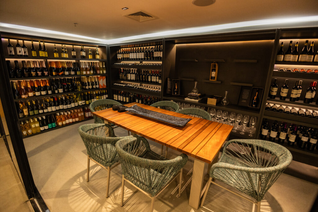 O ambiente, com capacidade para até 90 pessoas, foi projetado para unir versatilidade e sofisticação, adaptando-se a diferentes tipos de evento. A estrutura de bar e cozinha independentes garante praticidade e exclusividade no serviço, seja em coquetéis, jantares completos ou menus personalizados. O espaço conta ainda com uma adega climatizada com mais de 300 rótulos de vinhos, onde podem ser realizados jantares intimistas para até 6 pessoas, em experiências exclusivas de harmonização. Segundo André Faro, “a ideia é transformar esse espaço em um local agradável, com serviço impecável, a um preço justo para a qualidade Pepe oferecida”, pontua o sócio administrador do Almacen e da importadora.