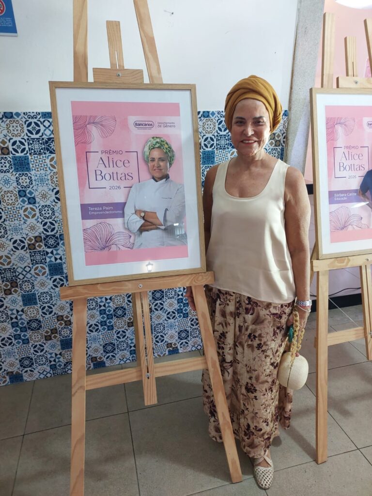 Protagonista de sua trajetória empreendedora conectando e levando a Bahia para o Mundo, a partir de seu trabalho virtuoso, a chef Tereza Paim – à frente do Grupo Tereza Paim (GTP), que reúne os restaurantes Casa de Tereza, Mesa de Tereza, Da TeTê Bar, Loja Tereza Paim e Tabuleiro da Chef – recebeu na noite de ontem, quinta-feira, 19, o prêmio Alice Bottas, na categoria Empreendedorismo,, entregue mãos pelo deputado federal Daniel Almeida,  promovido pelo Sindicato dos Bancários da Bahia, que aconteceu no salão de eventos do  Clube Espanhol. “Feliz em ter recebido esse importante prêmio, que exalta o poder feminino de sermos o que quisermos. Viva todas às mulheres premiadas neste evento”, disse Tereza.