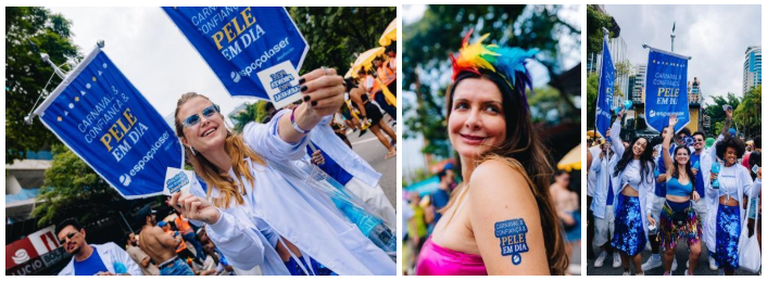 Na capital paulista, no dia 08 de fevereiro, a Espaçolaser marcou presença no bloco Beleza Rara, com Banda Eva, comandado por Felipe Pezzoni. Para aumentar a diversão, a empresa levou os “Inspetores da Pele” para a festa, que aplicaram tatuagens temporárias (removíveis e laváveis) nos foliões, dando toques de personalidade e ressaltando ainda mais a beleza da pele de quem esteve presente. Além da ampla visibilidade com estandartes e distribuição de brindes, a marca promoveu um ‘Brand Moment’inesquecível no trio elétrico: o folião que melhor representava a liberdade e a confiança promovidas pela marca foi convidado a subir ao trio para celebrar este momento especial ao lado da banda. A marca também levará este mesmo folião para curtir o Carnaval de Salvador, no bloco da Banda Eva.